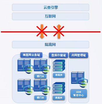 EDR 的管理平台支持统一的终端资产管理、终端病毒查杀、终端合规检查,支持微隔离的访问控制策略统一管理,支持对安全事件的一键隔离处置,以及热点事件 IOC 的全网威胁定位。
